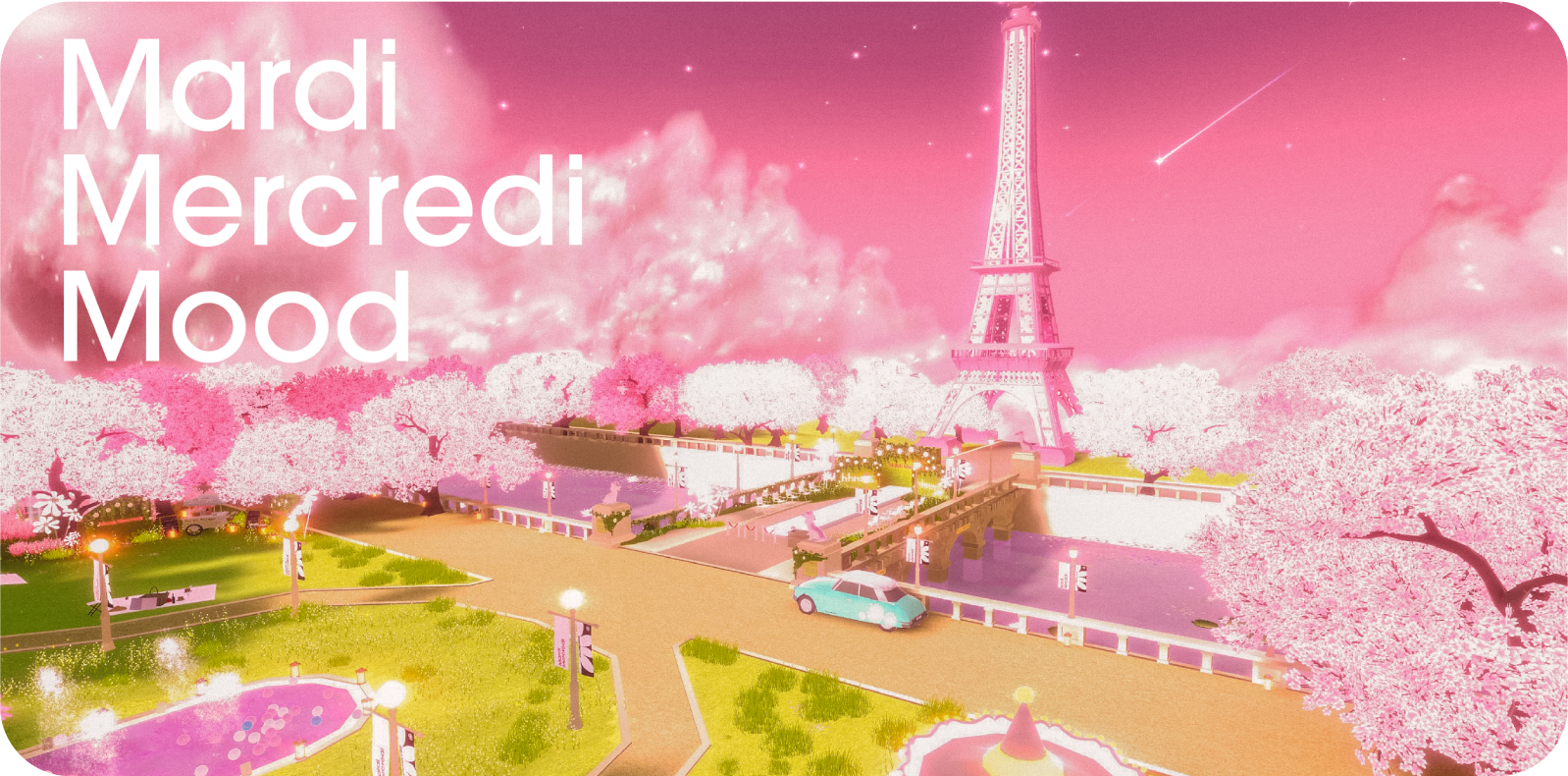 We developed Mardi Mercredi's metaverse world as a day and night in Paris, France, to express the French mood Mardi Mercredi wanted to create. Metaverse worlds help shape the worldview a brand wants to represent and deepen customer immersion.